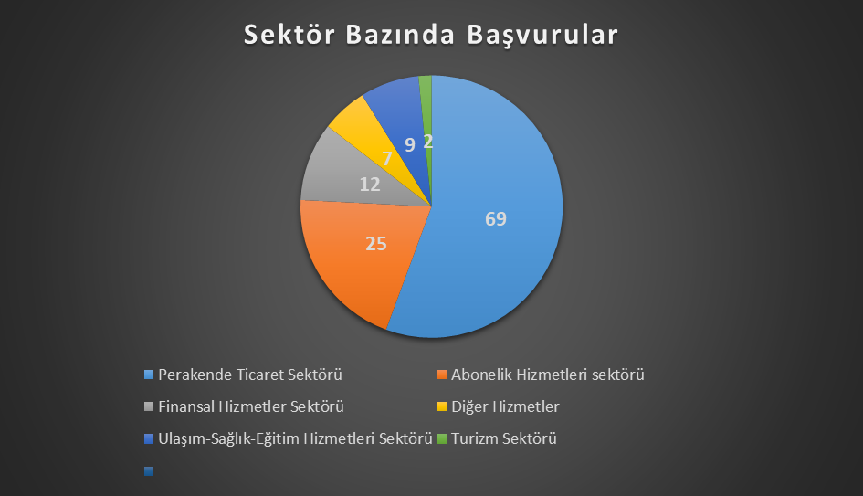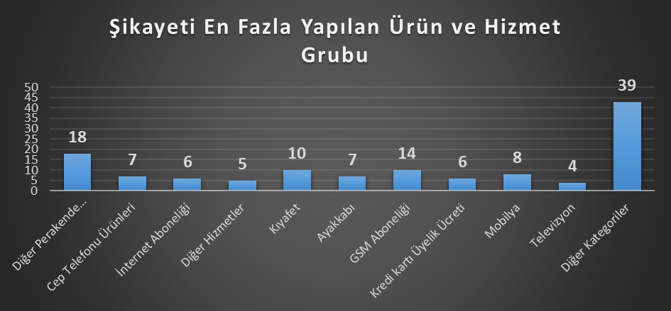 Ay içinde yapılan toplam 124 başvuruda en çok 18 adet başvuruyla diğer perakende ticaret ürünleri şikayet edildi.