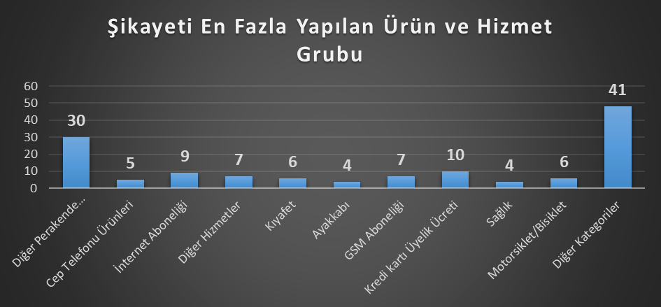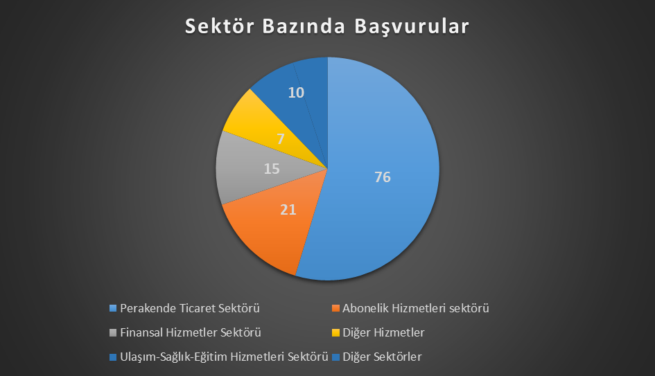 Ay içinde yapılan toplam 129 başvuruda en çok 30 adet başvuruyla diğer perakende ticaret ürünleri şikayet edildi.