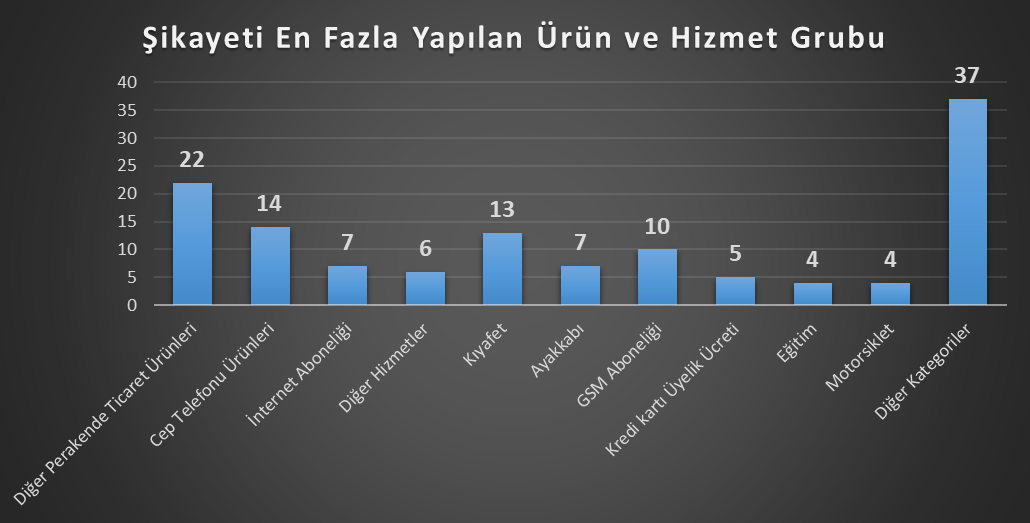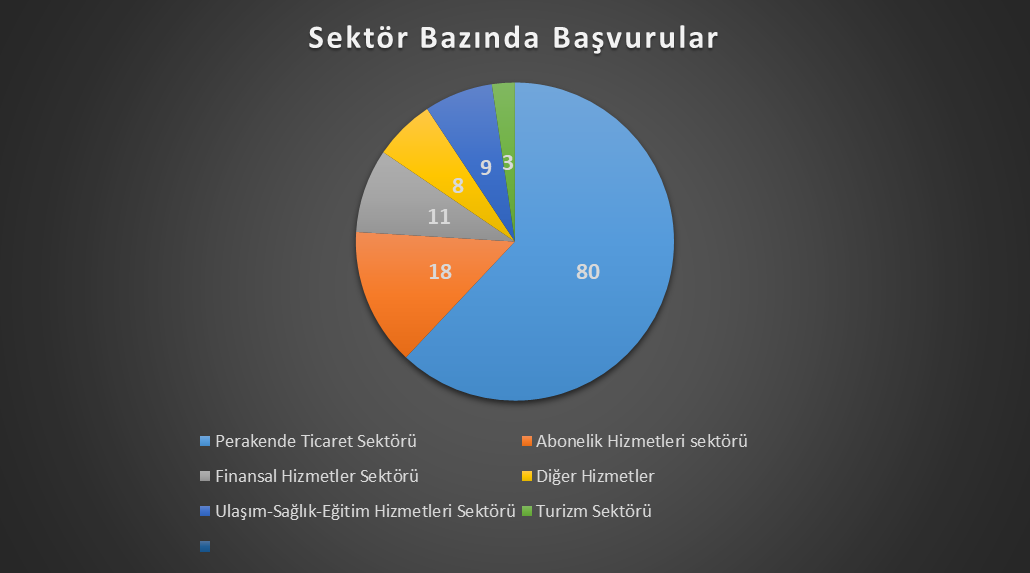 Ay içinde yapılan toplam 129 başvuruda en çok 18 adet başvuruyla diğer perakende ticaret ürünleri şikayet edildi.