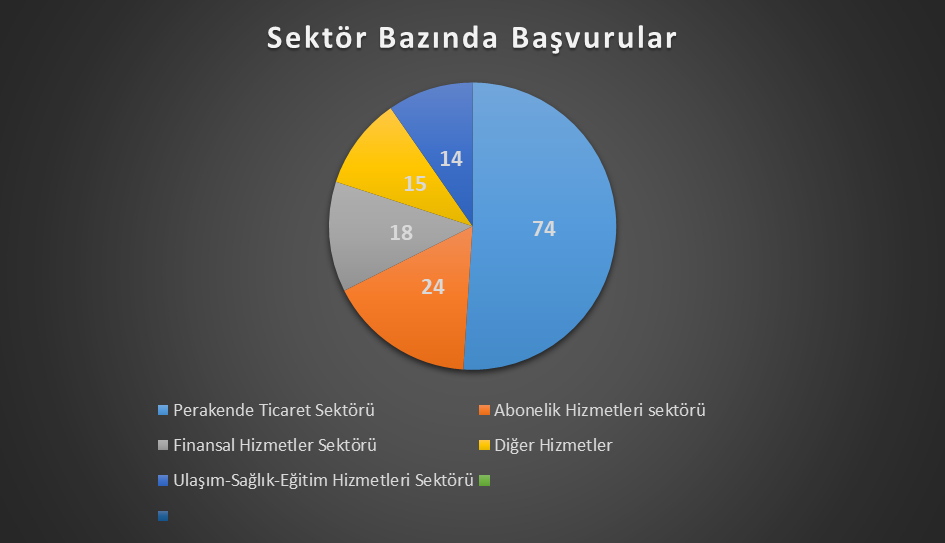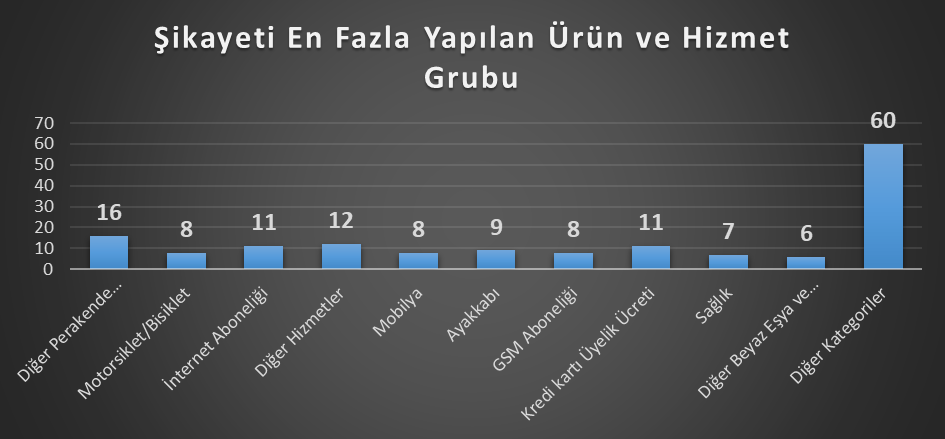 Ay içinde yapılan toplam 145 başvuruda en çok 16 adet başvuruyla diğer perakende ticaret ürünleri şikayet edildi.