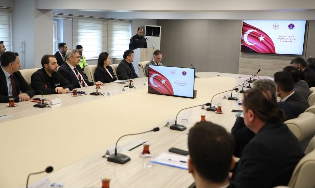 26 Aralık 2025Valimiz Sayın Dr. Nurtaç ARSLAN başkanlığında, Valilik 15 Temmuz Şehitleri Toplantı Salonunda gerçekleştirilen toplantıya Garnizon Komutanı, Belediye Başkanı, Vali Yardımcıları, Bartın Üniversitesi Rektör Yardımcısı, İlçe Kaymakamları, İl Jandarma Komutanı, İl Emniyet Müdürü, Sahil Güvenlik Batı Karadeniz Grup Komutanı, Ticaret İl Müdürümüz ile ilgili kurum amirlerimiz ve STK temsilcileri katıldı.