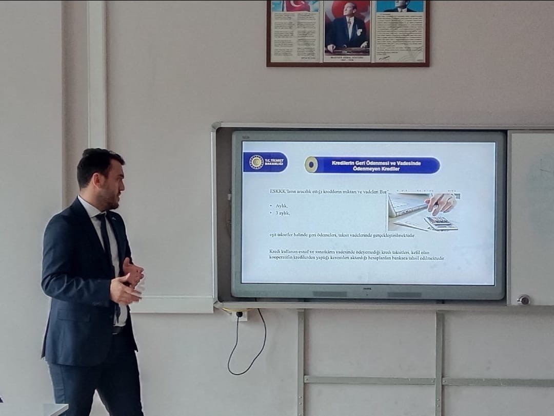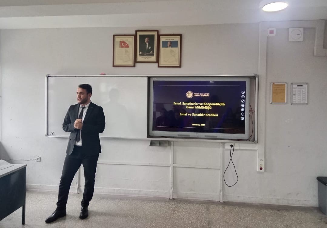 12 Aralık 2025Esnaf, Sanatkarlar ve Kooperatifçilik Genel Müdürlüğümüz tarafından girişimciliğin desteklenmesi amacıyla, esnaf ve sanatkâr olma potansiyeli bulunan ve iş hayatına atılmayı planlayan girişimci adaylarına yönelik olarak, kamusal destekler, kredi ve teşvik mekanizması, vergi ve sosyal güvenlik, iş yeri açılış süreçleri ve mesleğe ilişkin diğer bilgilerin derlenerek, meslek liselerinin son sınıflarında eğitim gören öğrenci - girişimci adaylarının, ticaret hayatına daha donanımlı ve farkındalıkları yüksek şekilde hazırlanmaları amacıyla Ticaret İl Müdürlüklerince eğitim verilmesi talimatlandırılmıştır.