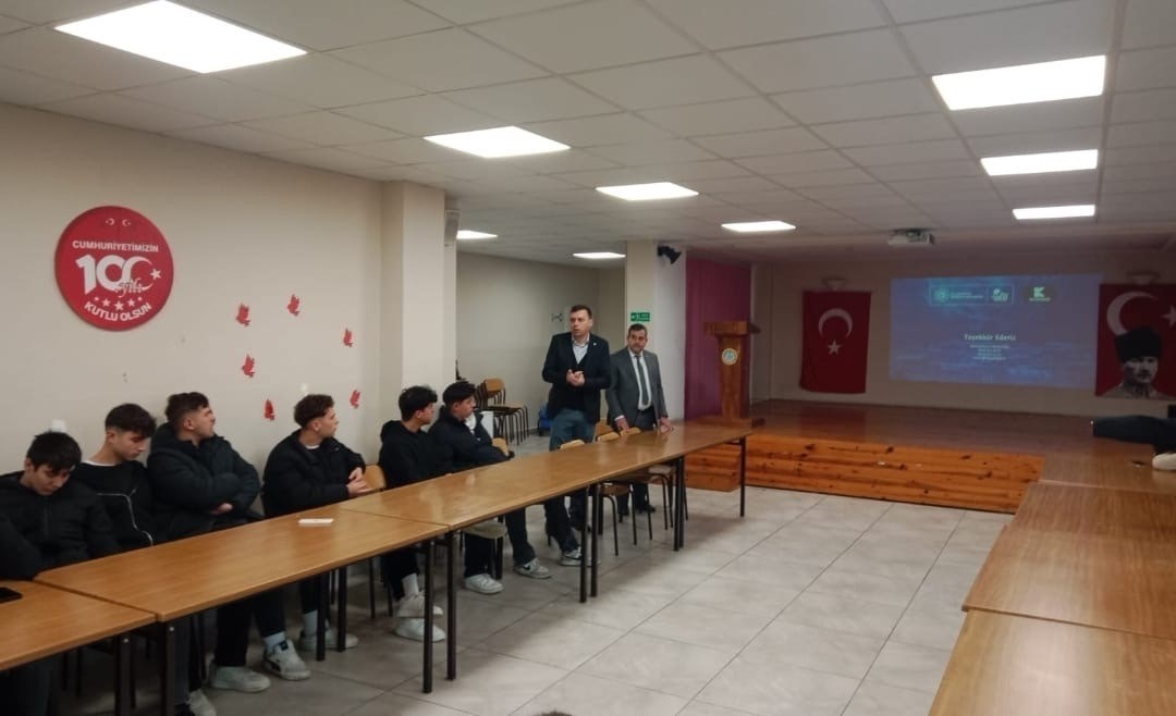 Seminerlere, İl Müdürlüğümüz personellerinden Şef Ertunç ÜLKÜ ve Memur Barış DENİZCİ ile KOSGEB Bartın Müdürlüğünden Büro Personeli Berat ŞERBETCİ katıldı. Öğrencilere iş hayatına atılmadan önce dikkat etmeleri gereken noktalar, girişimciliğin temel prensipleri, iş kurma süreçleri, güçlü–zayıf yön analizi, finansman kaynakları ve devlet destekleri konusunda kapsamlı bilgiler verildi.