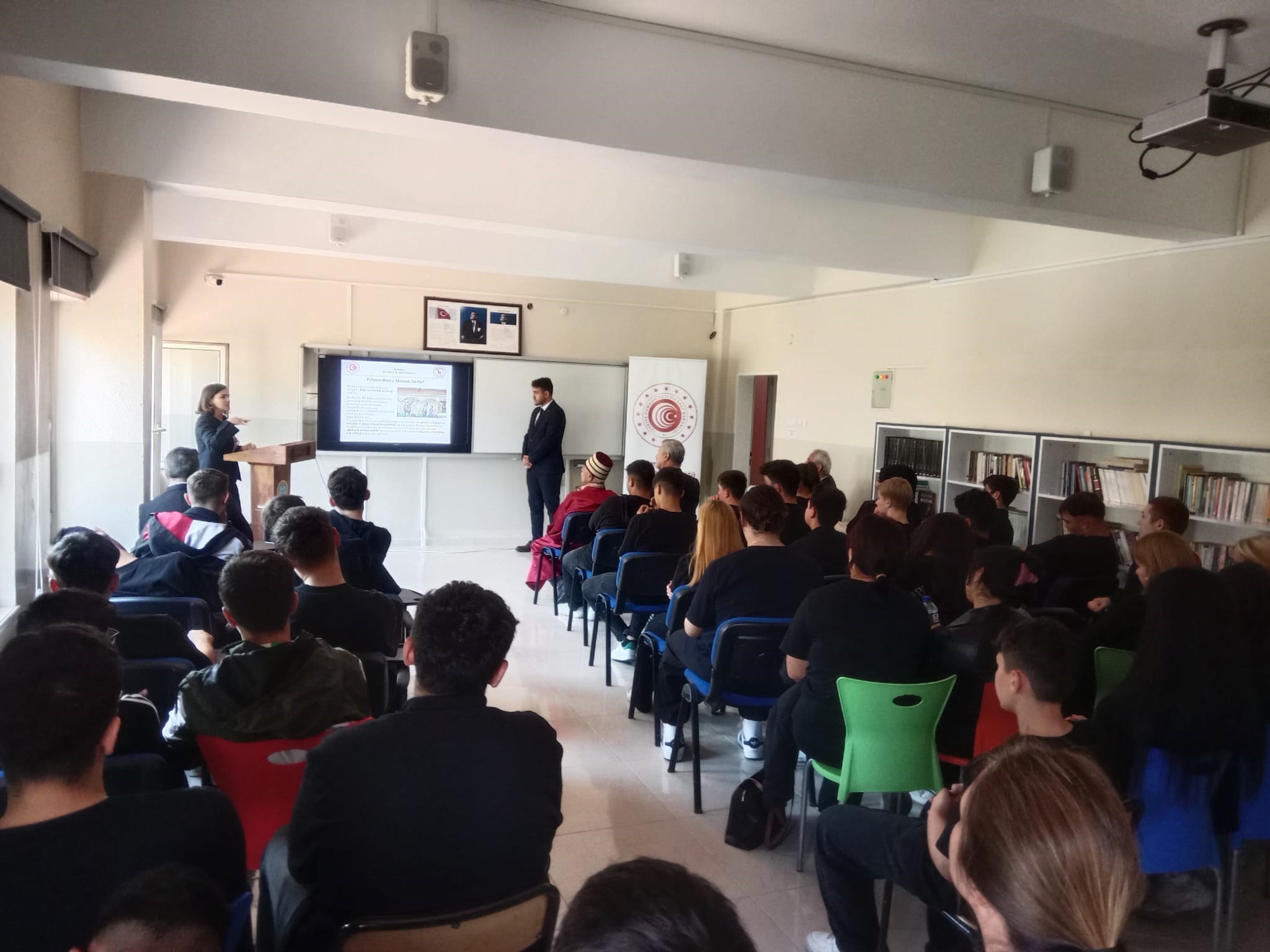 26 Eylül 2025Ahilik Haftası kutlama programı çerçevesinde, Saygı Duruşu ve İstiklal Marşı’mızın okunması sonrasında İl Müdürlüğümüz personeli Halime KÖR tarafından Lütfullah Kocabaşoğlu Mesleki Eğitim Merkezi öğrencilerine Ahilik hakkında sunum yapıldı.